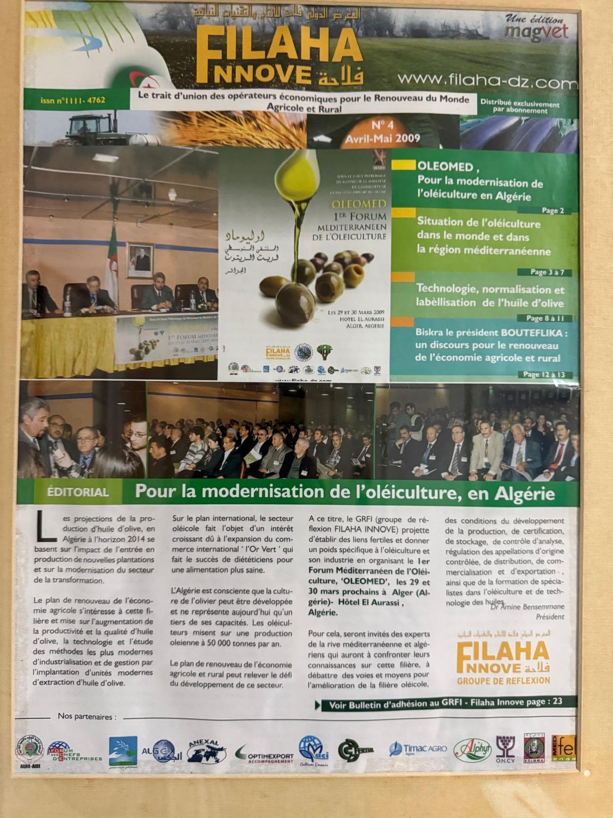 l’organisation de l’oleiculture a commencé en 2009 a l’occasion de la tenue de la première conférence OLEOMED et l’organisation de l’interprofession oléicole Dont ci joint le n4 du journal. Filaha Innov